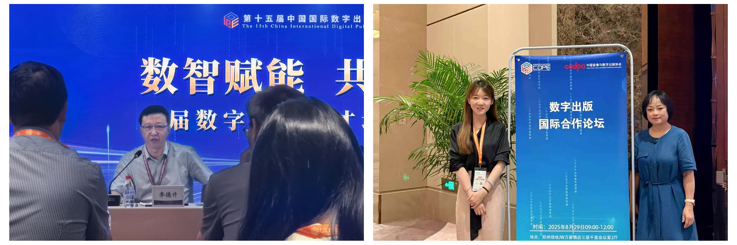 28日下午,第十五届中国国际数字出版博览会主论坛举行。中央宣传部分管日常工作的副部长胡和平、河南省委书记刘宁致辞,省长王凯出席。陈丹受邀参加本次主论坛。28日晚,方正之夜·第二届《中国数字出版》青年论坛举行,陈丹、学校出版学院执行院长李德升及新闻传播学院教师李军受邀参会,出版学院教师刘广东获中国音像与数字出版协会2024年度科研课题结项荣誉证书,并对课题情况作了汇报。29日上午,期刊数字化发展论坛举行,陈丹受邀出席,并主持圆桌访谈“AI与期刊未来”。29日下午,全国出版博士专业学位培养工作会议举行,陈丹、李德升受邀参会,陈丹就学校博士点建设情况做专题报告。同期举办的“智链出版:AI驱动的内容生产与技术需求变革”研讨会上,陈丹受邀出席并作主旨发言。陈丹还受邀出席了《出版融合发展报告(2025)》发布会暨出版融合发展专题研讨会、中国特色出版学核心教材《出版融合发展案例》定稿会等系列活动。