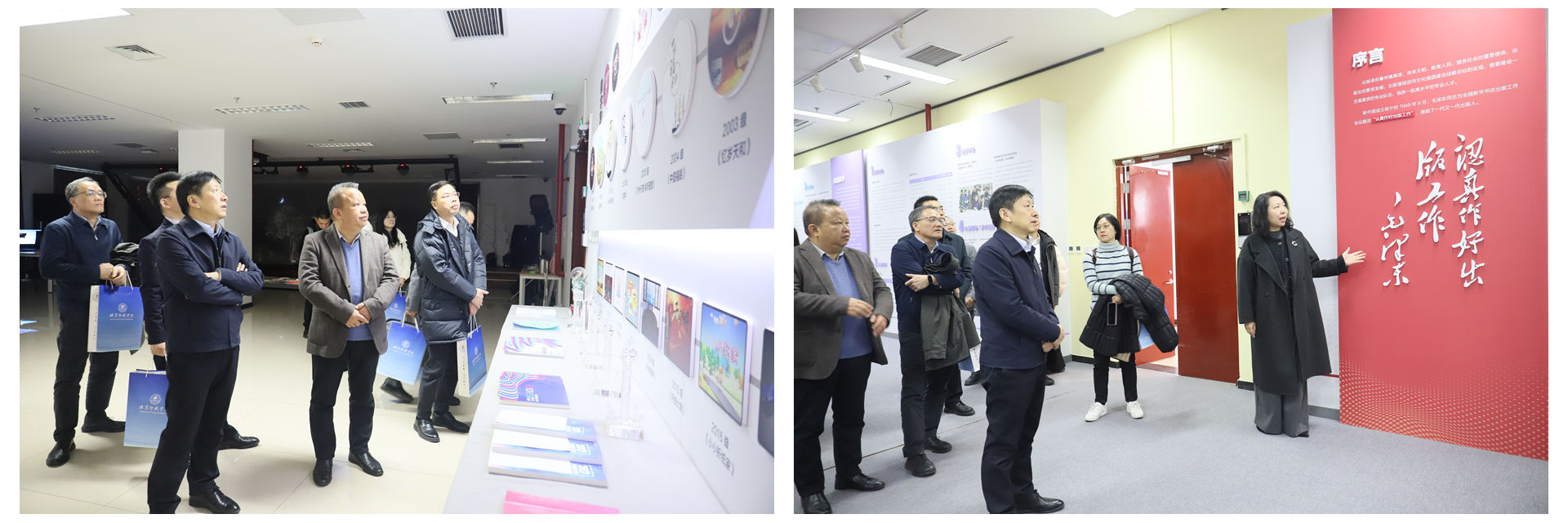 调研期间,广西出版传媒集团有限公司一行参观了学校助力北京2022年冬奥会和冬残奥会主题展、艺术教育成果展、新媒体学院国家级实验教学示范中心、出版学科特色展、等离子体实验室、数字化印刷装备北京市重点实验室和毕昇书坊等。