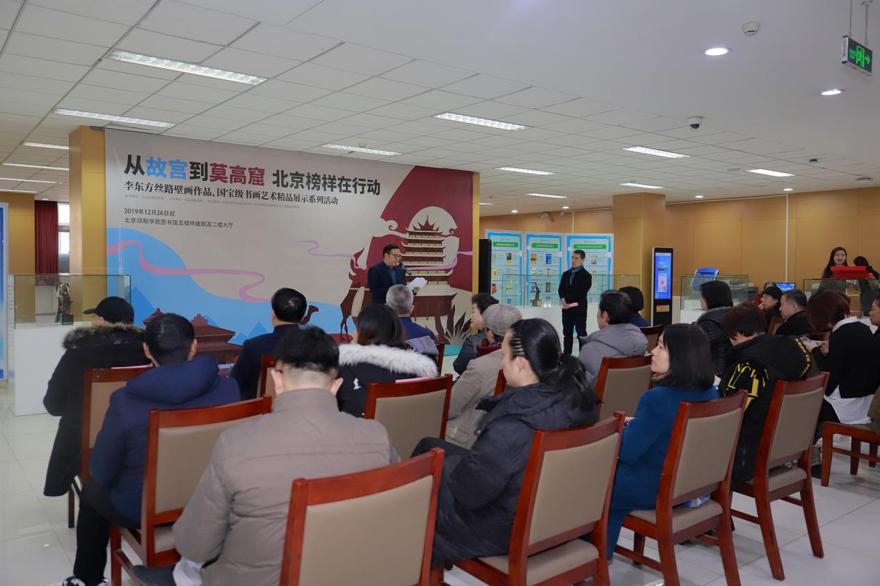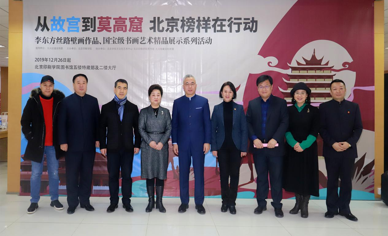 12月26日下午,“从故宫到莫高窟 北京榜样在行动”李东方丝路壁画作品、国宝级书画艺术精品展在学校图书馆开幕。本次展览由大兴区委宣传部指导,北京印刷学院主办,北京李东方文化艺术中心、北京印刷学院图书馆、大兴馆藏文化联盟承办。