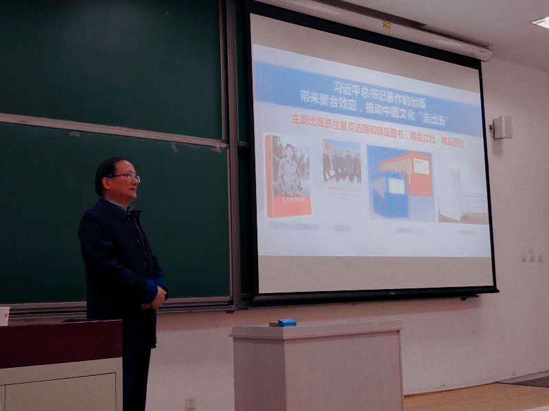 徐步结合自身对十九大精神的学习,从让世界更好地了解中国、了解中国共产党、了解习近平新时代中国特色社会主义思想三个方面,阐述了全力做好习近平总书记著作对外出版工作的重要意义。徐步详细介绍了《习近平谈治国理政》从翻译、编辑、出版、印制到发行过程中的创新之举,让大家深刻感受到我国出版工作者高度的政治意识、一流的专业素质和精益求精的工作精神。