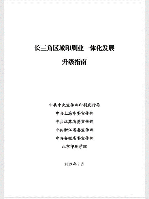 为贯彻落实习近平总书记对长三角区域一体化发展国家战略重要指示要求,协调推动长三角区域印刷业一体化建设,中宣部印刷发行局指导上海市委宣传部、江苏省委宣传部、浙江省委宣传部、安徽省委宣传部、北京印刷学院共同编制《长三角区域印刷业一体化发展升级指南》(以下简称《升级指南》)。