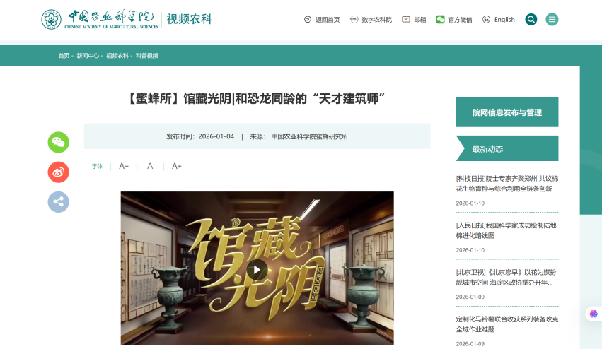 2025年6月28至2026年1月4日,学校新闻传播学院与北京日报社光影记忆工作室联合出品的《馆藏光阴》系列短视频前五期陆续在北京日报客户端、视频号、百家号、微博号等全网平台上线,累计播放量破百万,相关话题上榜微博热搜,该系列短视频以AI+轻量化传播形式传播博物馆文化,被学习强国、中国农业科学院官网、北京市文旅局、北京市水务局、北京市广播电视局、长安街知事等官方微博号转载。