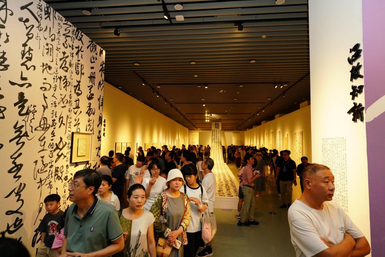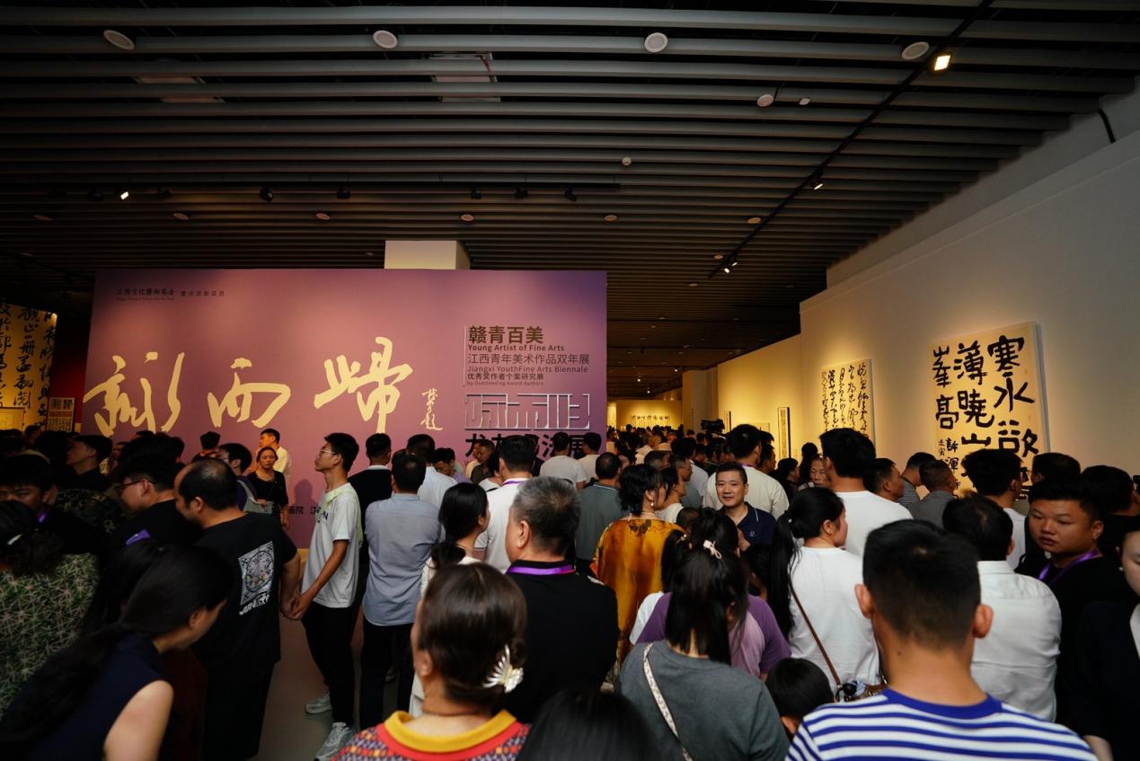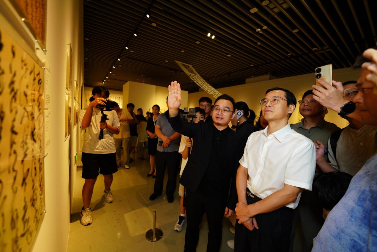8月23日,设计艺术学院教师龙友书法作品展“泳而归”在江西省美术馆开幕。本次展览由江西省文化和旅游厅指导,江西画院、江西省美术馆主办,江西省政府副秘书长、办公厅党组成员杨俊出席并宣布展览开幕。江西省文化和旅游厅党组成员、副厅长韩之宇主持开幕式。中央美术学院教授、当代书法家、艺术家邱振中,荣宝斋有限公司副总经理李春林作为嘉宾代表致辞。学校和国内部分艺术类单位负责人、专家,知名艺术家、青年代表及众多书法爱好者参加开幕式。