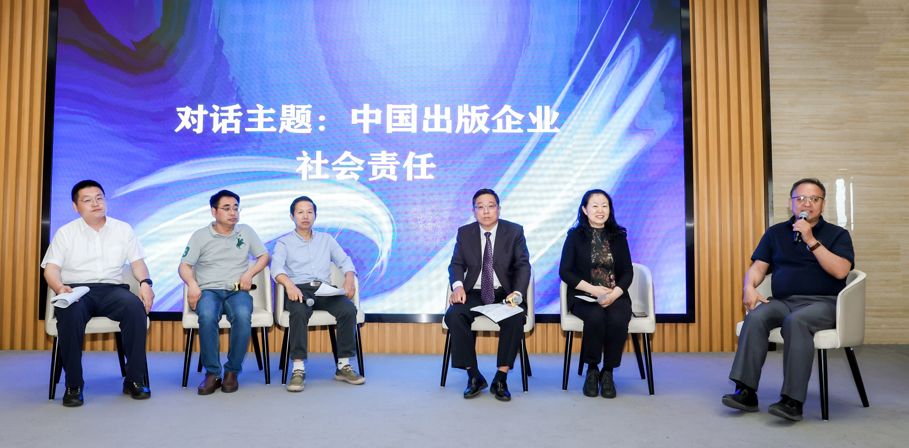 在“中国出版企业社会责任”主题对话环节中,韬奋基金会副理事长兼秘书长魏玉山担任主持人,与五位来自出版界和学界的专家学者展开深入交流。各位专家围绕新时代背景下出版企业如何履行社会责任、推动出版行业可持续发展等议题进行了深入探讨。