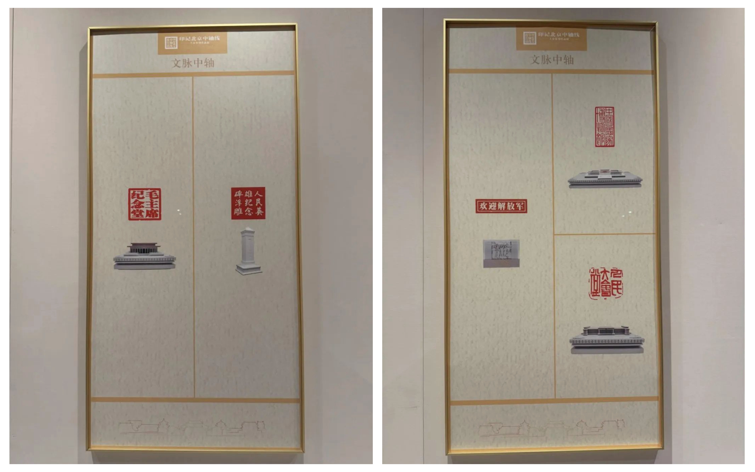 设计艺术学院师生团队的作品以北京中轴线为创作灵感,围绕人民英雄纪念碑、天安门、钟鼓楼、御花园、庆成宫等十二处核心遗产点,融合篆刻艺术语言与当代设计理念,展现了中轴线承载的中国都城秩序理想与东方美学精神,受到组委会和现场观众的高度评价。