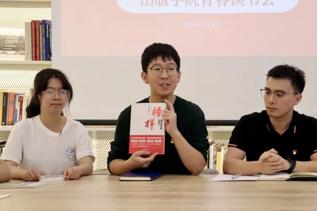 李欣宇带领同学们共读《榜样:我们这里的年轻人》一书,鼓励同学们要寻找榜样、学习榜样、成为榜样,用榜样人物激励自己树立远大理想,矢志出版报国,展现出新时代出版青年的青春力量。